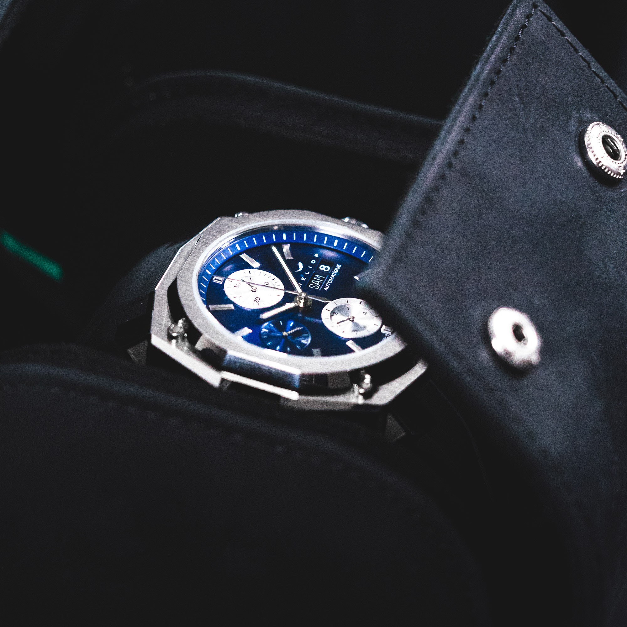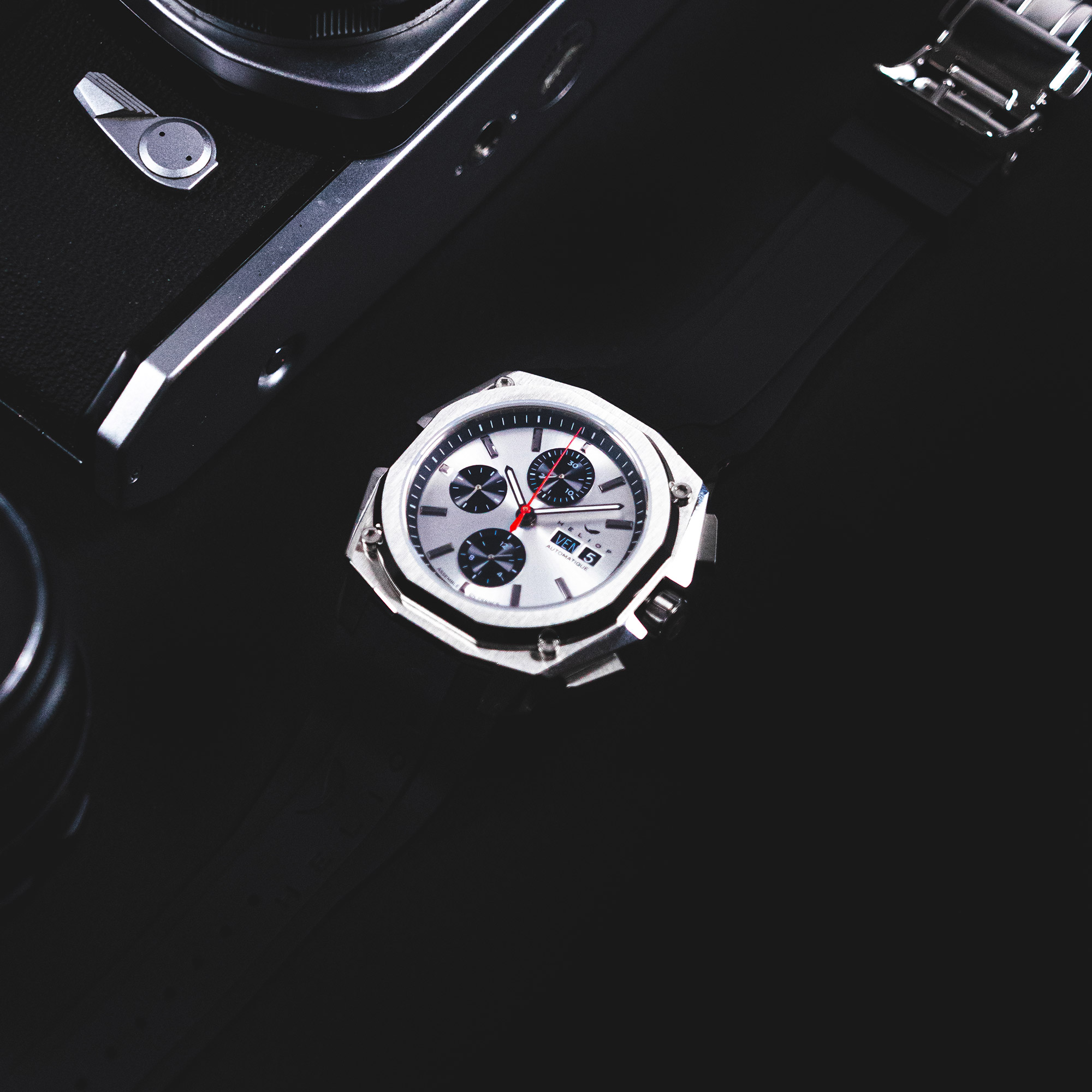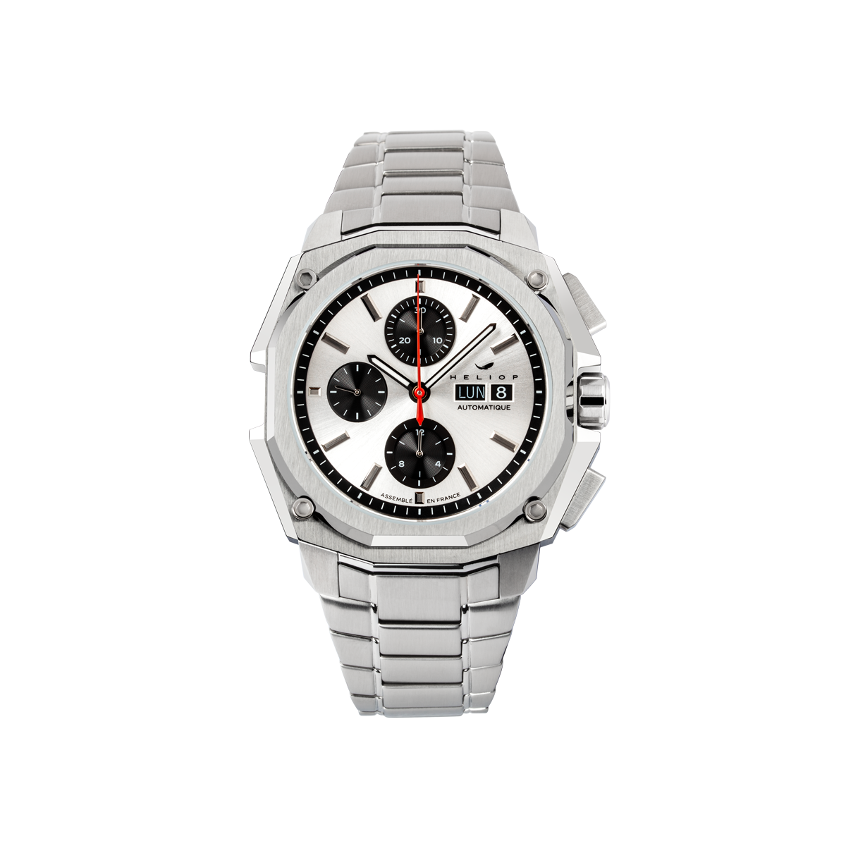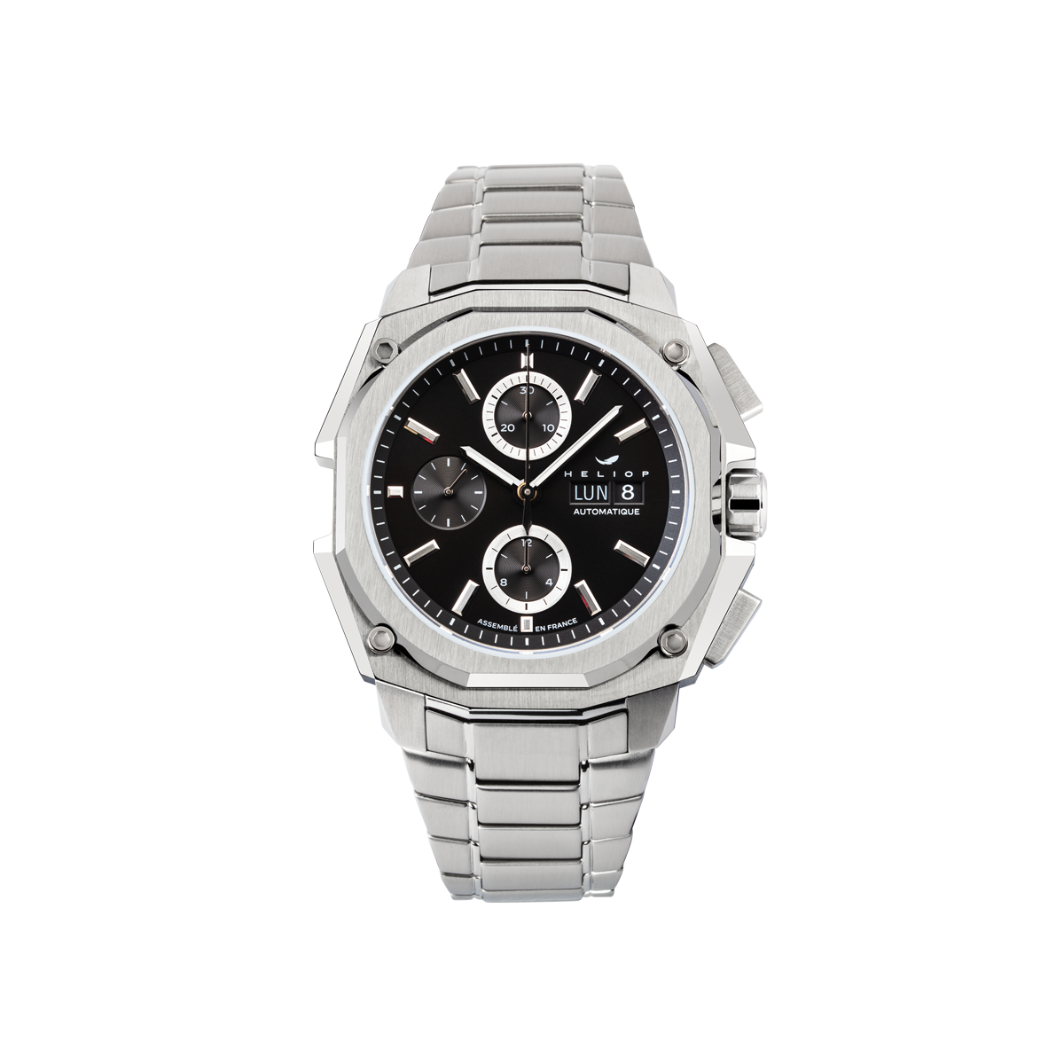 Heliop assume un design moderne et nerveux. Pour sa première collection, le parti pris est d’offrir une pièce qui revendique une certaine puissance, une signature esthétique qui correspond à son état d’esprit et à celui de ses collectionneurs actifs, sportifs et urbains.
